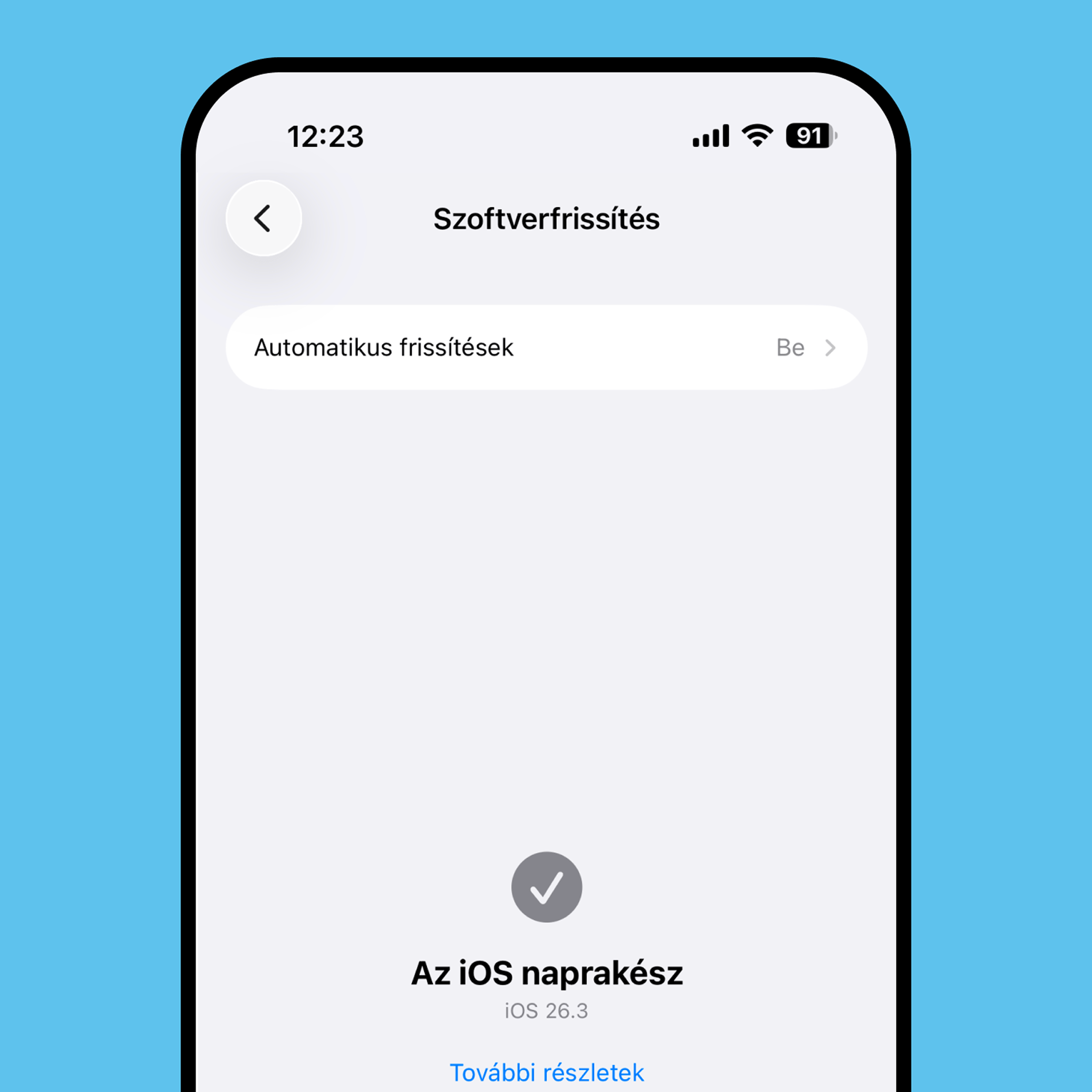 Frissítsd a telefonod iOS 26.3 vagy újabb szoftververzióra.