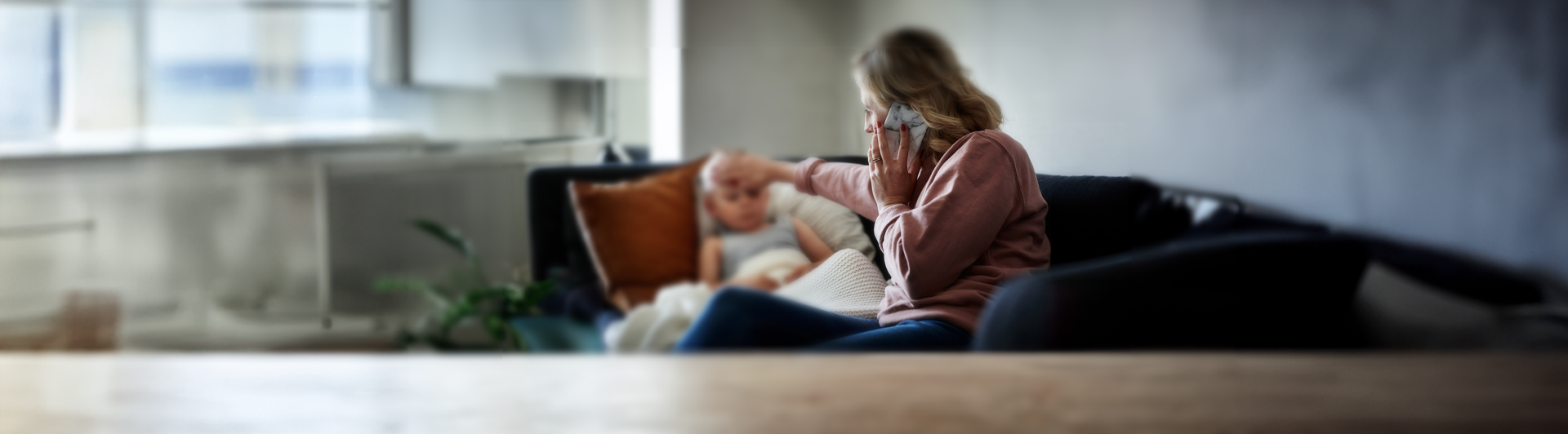 Kislány, aki anyukájával beszél, miközben az apa telefonon keresztül kér segítséget.