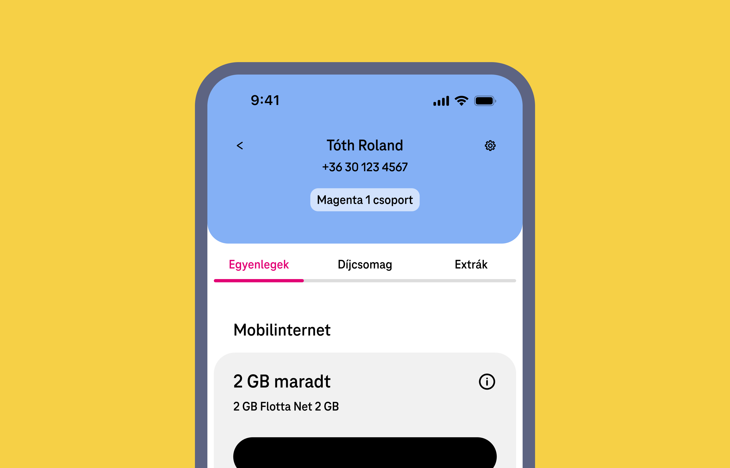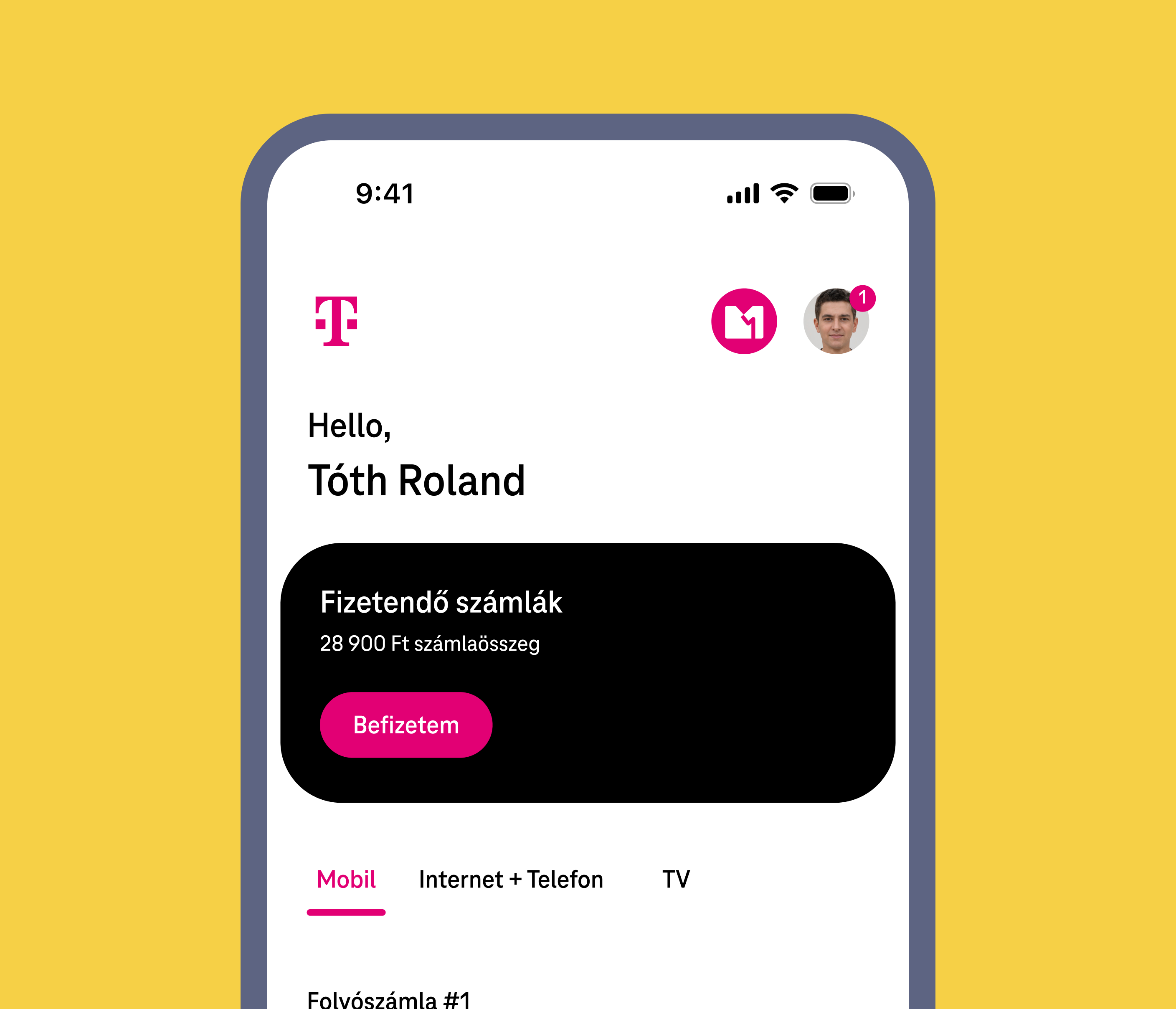 Új tagolást vezettünk be, melynek köszönhetően elkülönítve, 3 fülön látod a mobil, vezetékes internet + telefon és TV előfizetéseidet. Nyomj a fül elnevezésére, vagy húzz balra a fülek közötti váltáshoz.
