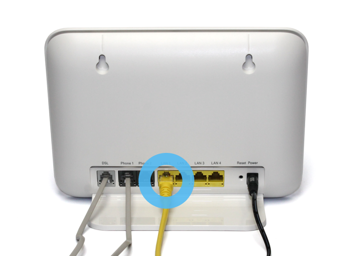 Csatlakoztasd a LAN kábelt a készülék hátoldalán lévő egyik sárga portba.