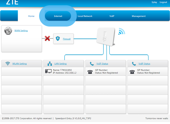 Belépés után a felső menüsorból válaszd ki az „Internet” menüpontot.
