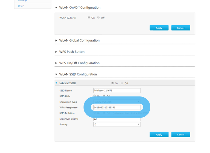 A Wi-Fi kapcsolathoz egyedi jelszót is létrehozhatsz a konfigurációs felületen (192.168.1.254).
