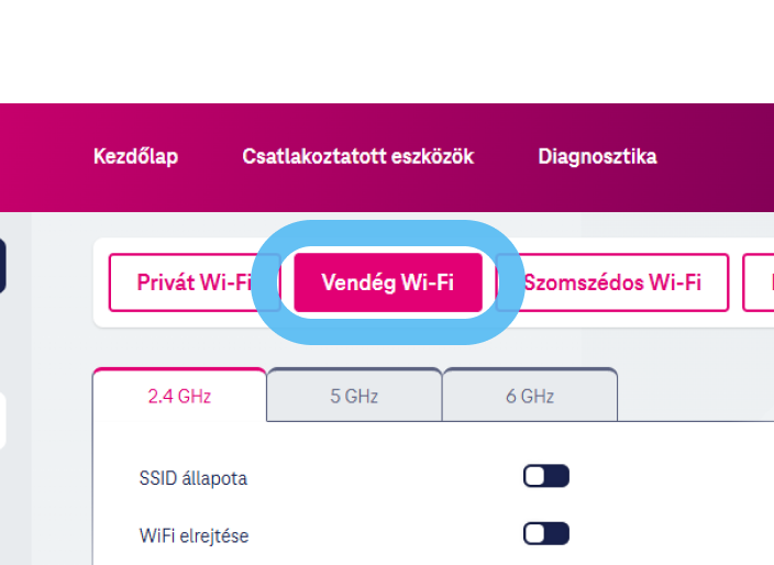 Válaszd ki a Vendég Wi-Fi menüt a felső sorból.