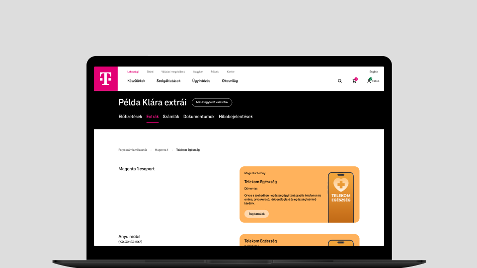 2Amennyiben 2022. augusztus utáni lakossági csomagba tartozó TV-, otthoni telefon-, internet- vagy 2019 december utáni lakossági mobil díjcsomagos vagy feltöltőkártyás Domino előfizetésed van, 1690 Ft-os havi díjjal, Domino esetén időszaki díjjal veheted igénybe a Telekom Egészség extrát.