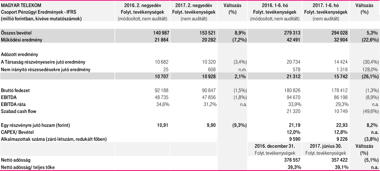 közzétette 2017. második negyedévre és első félévre vonatkozó Nemzetközi Pénzügyi Jelentési Szabványok (IFRS) szerinti konszolidált pénzügyi eredményeit.