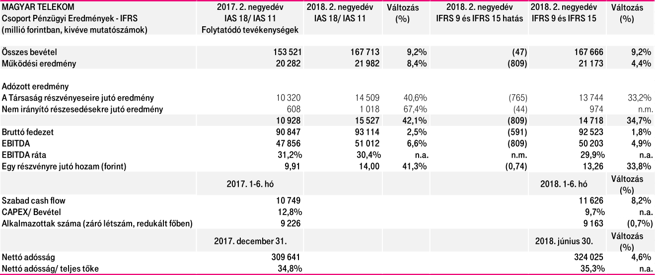 közzétette 2018. második negyedévre és első félévre vonatkozó Nemzetközi Pénzügyi Jelentési Szabványok (IFRS) szerinti konszolidált