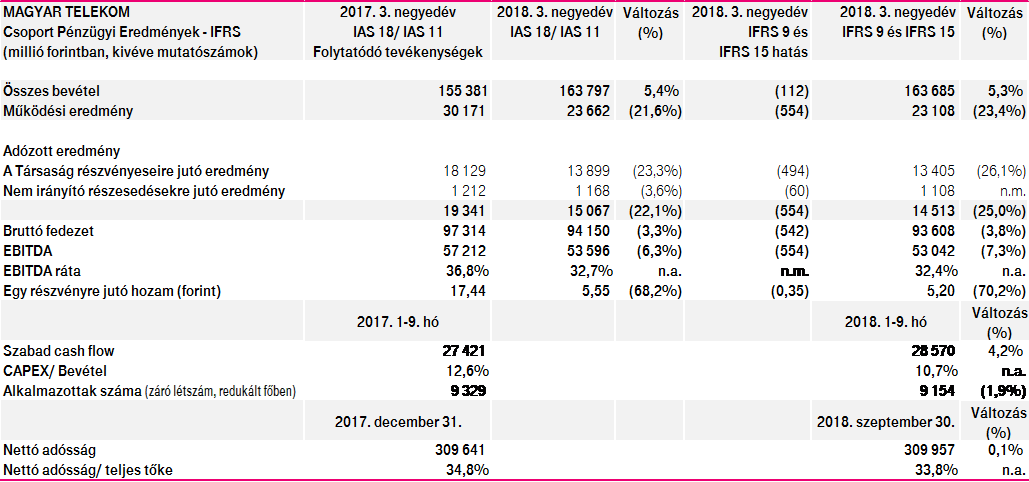 MTELEKOM HB), Magyarország vezető távközlési szolgáltatója ma közzétette 2018. harmadik