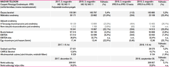MTELEKOM HB), Magyarország vezető távközlési szolgáltatója ma közzétette 2018. harmadik